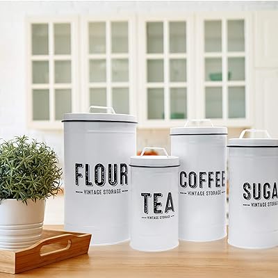 Characterful canisters like these are a sure way to tidy up your kitchen while lending some farmhouse flair to your space. Vintage spring rose and butterfly 3 piece kitchen canister set august grove wayfair north america $ 51.99. Read reviews for set of 4 ivy canisters. Kitchen canisters & jars /. 4 out of 5 stars with 4 ratings. Sold individually or as a set of 3, 4 or 5. 5 l canisters with lids. Ending jul 22 at 8:37am pdt 6d 11h. Barnyard designs kitchen canisters with bamboo lids, airtight metal canister set, coffee, sugar, tea, flour storage containers, farmhouse kitchen decor, black, 5.25 x 6.75, set of 3 4.5 out of 5 stars 909 An exclusive design by aaron probyn. 5 out of 5 stars. Oggi stainless steel canister set w/ acrylic lid & clamp 4 pc kitchen storage coffee. Copper hammered stainless steel 4 piece kitchen canister set.