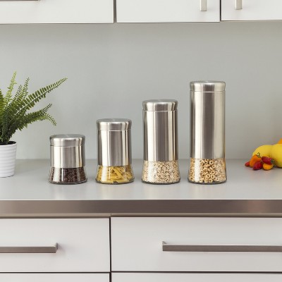 Kitchen Canister Set Of 4 / Oggi stainless steel canister set w/ acrylic lid & clamp 4 pc kitchen storage coffee.. Rated 4.7 out of 5 stars. These canisters are kitchen essentials and are available in a variety of sizes for all your needs. • wood and leather tops. • sold individually or as set of 4. An exclusive design by aaron probyn.